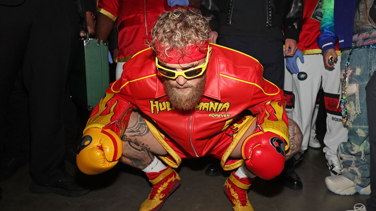 8:55 p.m. - Paul has arrived at Kaseya Center for the biggest fight of his career. He's carrying a cane and wearing a skin-tight muscle shirt and a chain necklace.