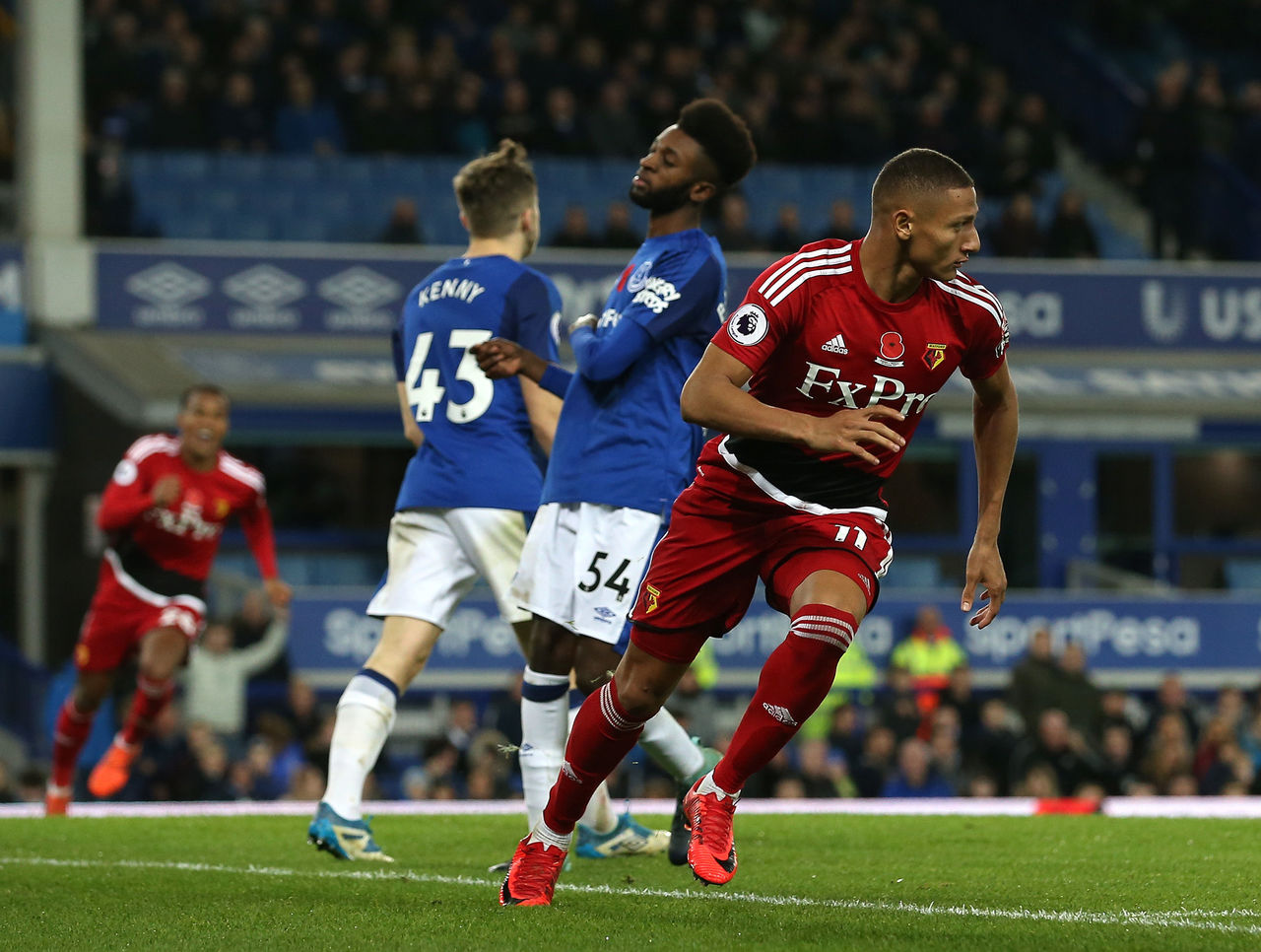 46' - Watford takes the lead just 29 seconds into the second half, when Everton's defence is already a disorganised mess. Andre Gray lofts the ball over Jonjoe Kenny to find Richarlison, who rounds Jordan Pickford and stabs home.