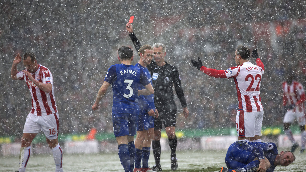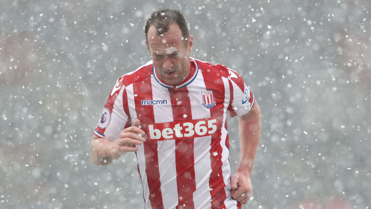 The first half of Stoke City's visit Saturday from Everton had a wintry feel to it after snow blanketed the bet365 Stadium pitch before the storm system passed and clouds parted to reveal a blinding Staffordshire sun.