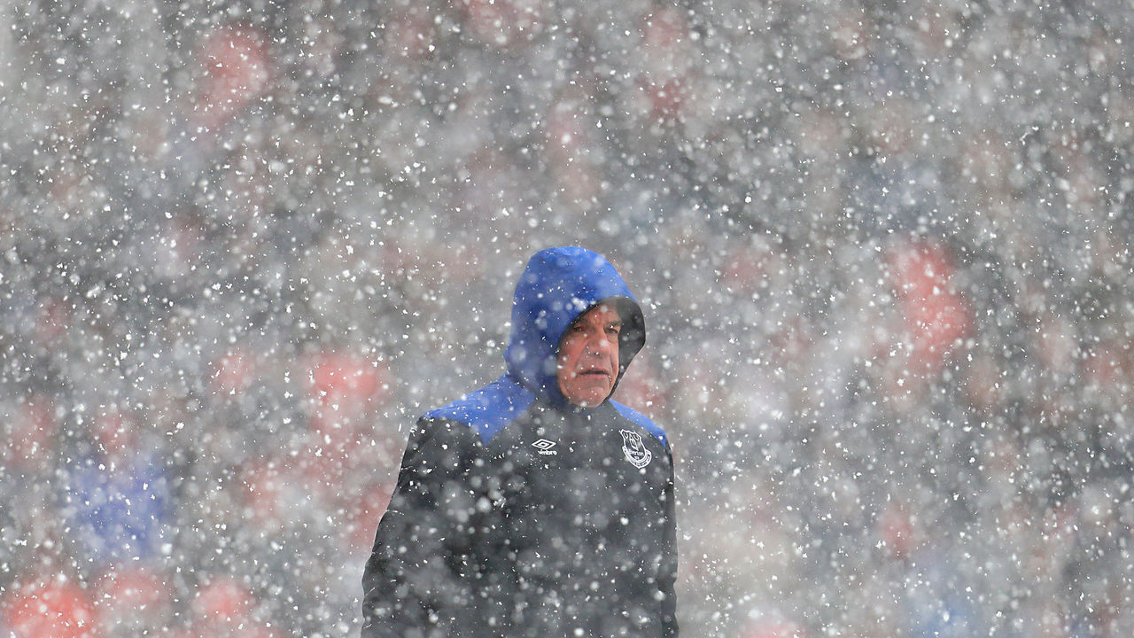 Snow would return moments before the interval as the players headed down the tunnel for a cuppa. Here are a few pictures from a mess of a match, one that Everton would go on to win 2-1 thanks to Cenk Tosun's double:
