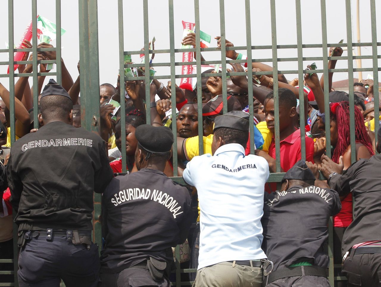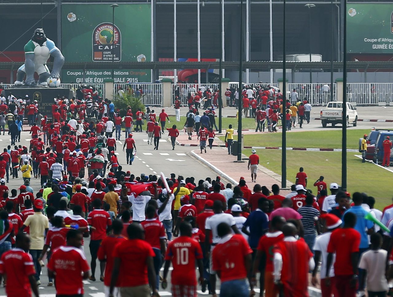 Supporters walk towards the Estadio de Bata ahead of kickoff
