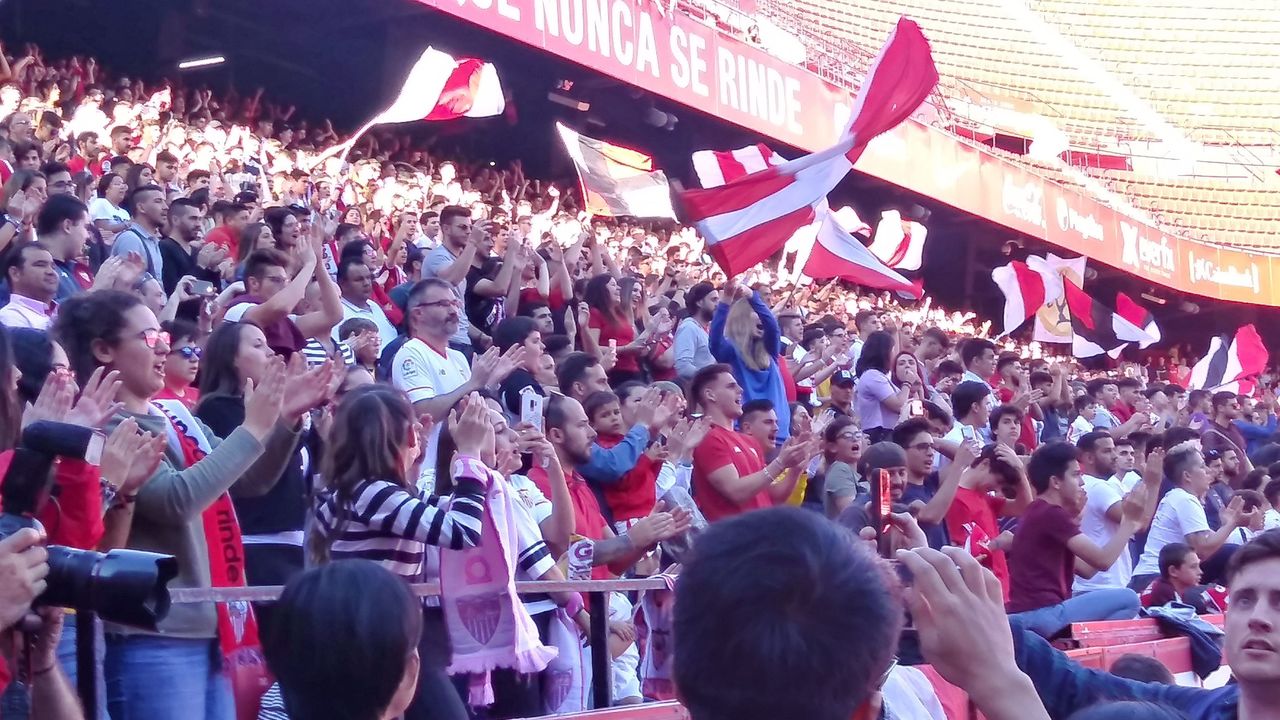 For Sevilla, the first official dress rehearsal for this season's second edition of El Gran Derbi was Friday's open training session. The ultras were animated 15 minutes before the players took to the Sanchez Pizjuan pitch. When the squad trotted out of the dressing rooms for a half-baked practice - they loitered around the center circle for a rondo, did some crossing drills, and then participated in a brief short-field match - the crowd lapped it up. Songs followed the typically Spanish one-two-three tempo or borrowed from old pop ditties - like the Pet Shop Boys' "Go West" - and reverberated around the stadium.