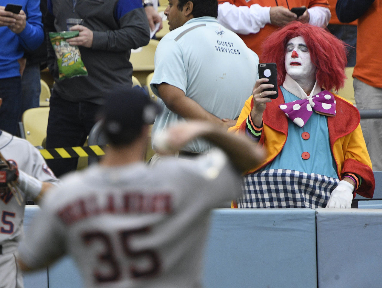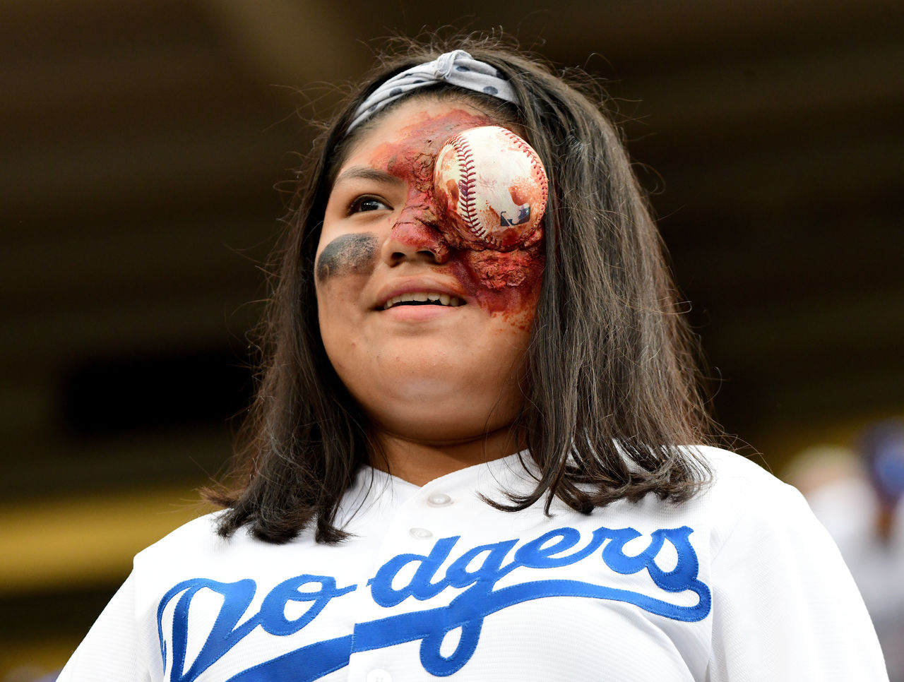 That much became clear Tuesday night at Chavez Ravine, where scores of fans showed up in costume - dressed up as everything from ghouls to hot dogs - to watch their Los Angeles Dodgers attempt to stave off elimination in Game 6 of the World Series. Here, below, are some of the best costumes from the Dodgers' spooky showdown with the Houston Astros: