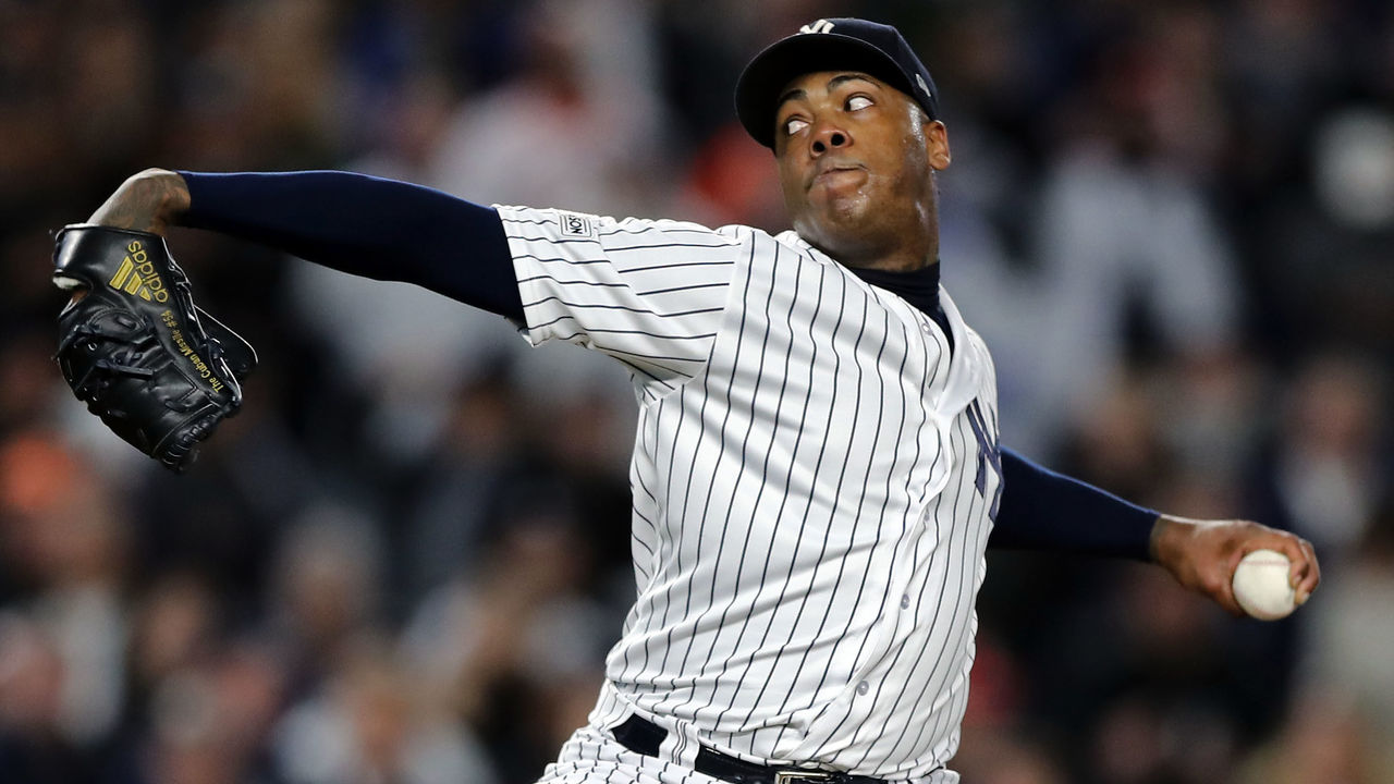 The Yankees signed flame-throwing closer Aroldis Chapman following his 2016 World Series win with the Cubs, less than five months after they traded him to Chicago.