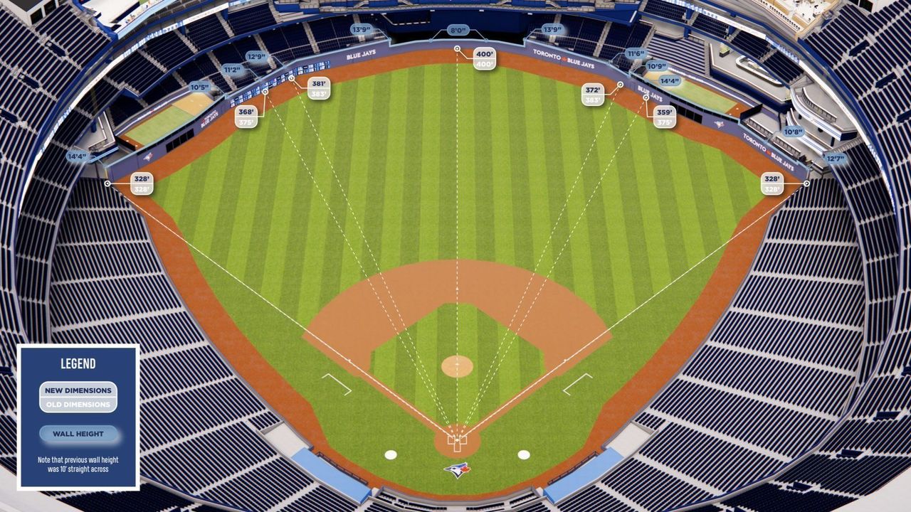 The Blue Jays say their modeling predicts the venue will play like it did with its previous dimensions - outfield dimensions unchanged from its opening in 1989 when the facility debuted as the state-of-the-art SkyDome.