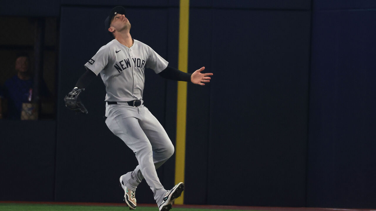 The Yankees bombed away, scoring every one of their 10 runs over three games via the home run. But they also kicked the baseball all over the place, committing seven errors, several of them downright laughable. New York's defense was even funny at times on innocent plays. Jasson Dominguez took a terrible angle on an Alejandro Kirk liner to center-left Wednesday night and ended up waving awkwardly as the ball skipped by him. Not an error, but still a blooper.