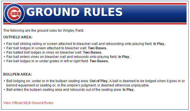 Cubs center fielder Dexter Fowler went to retrieve the blunder, but the ball got lost in the ivy on the outfield wall at Wrigley Field and was immediately called a ground rule double.