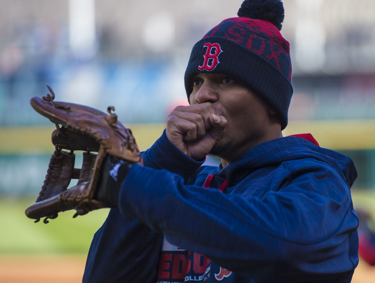 Even though temperatures in Beantown can get nippy as well, the Red Sox made sure to dress appropriately for the encounter.