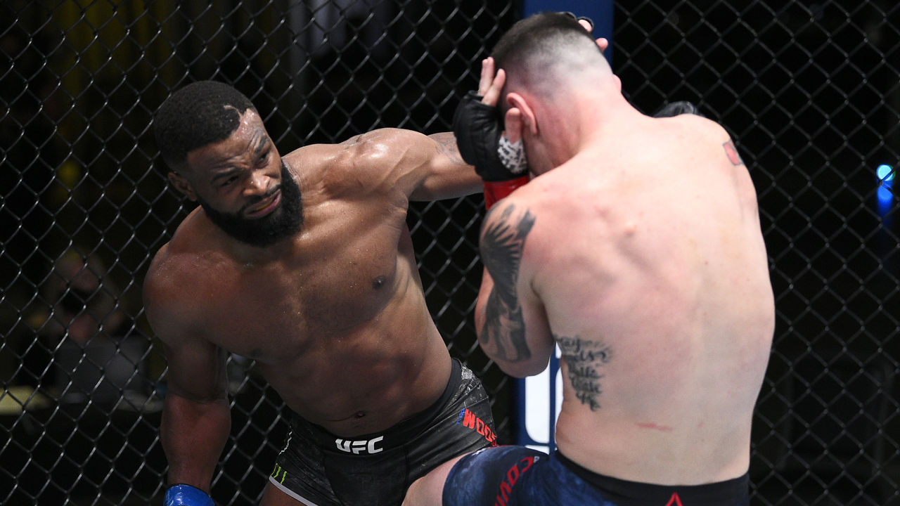 Welterweight contender Colby Covington beat Tyron Woodley via fifth-round TKO in the UFC Fight Night main event Saturday at the UFC Apex in Las Vegas.