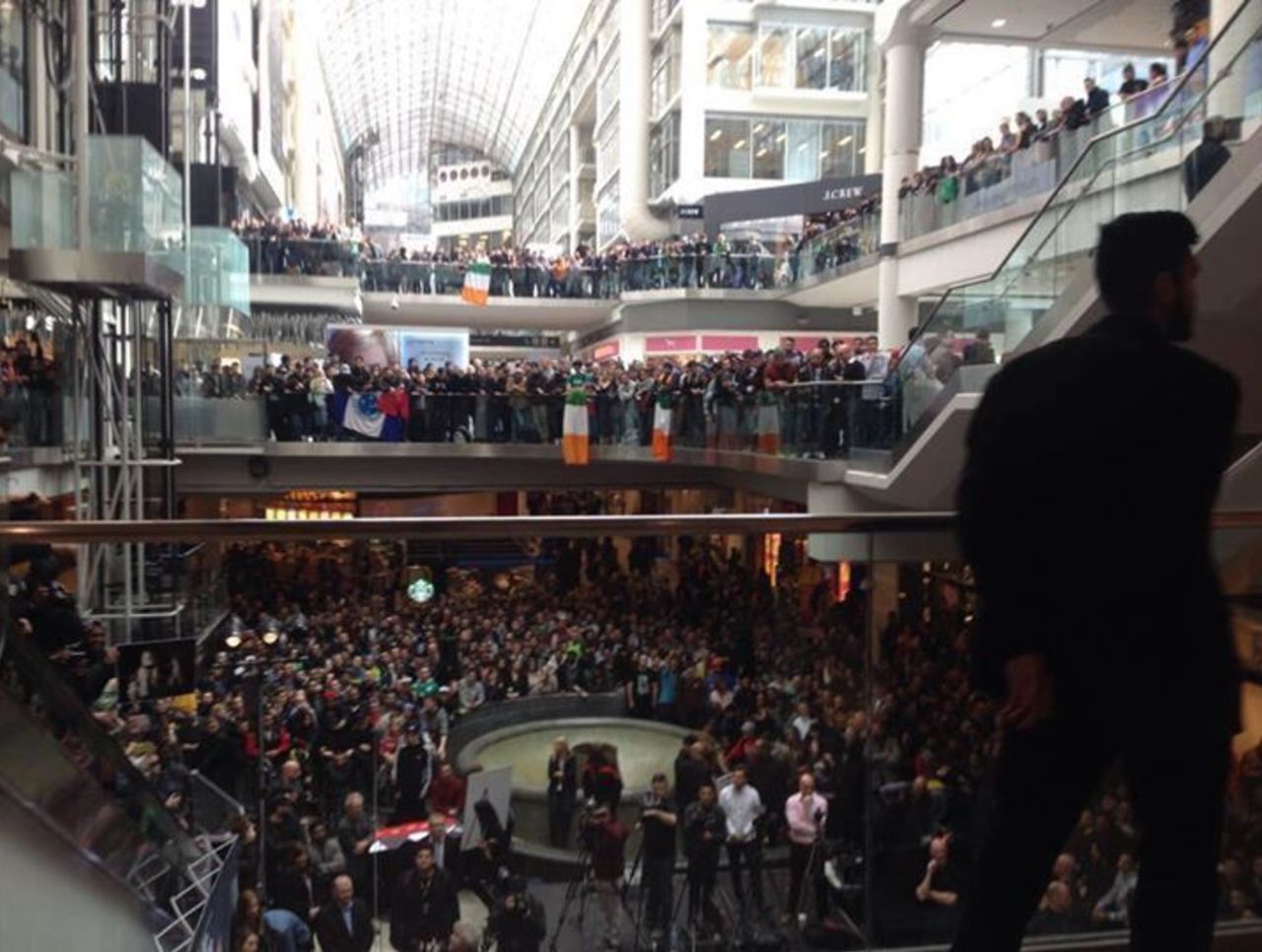 White ended up sitting between Aldo and McGregor during the interview and everyone attended the UFC 189 World Tour press conference at Toronto's Eaton Centre mall later in the day as planned where there was quite the turnout.