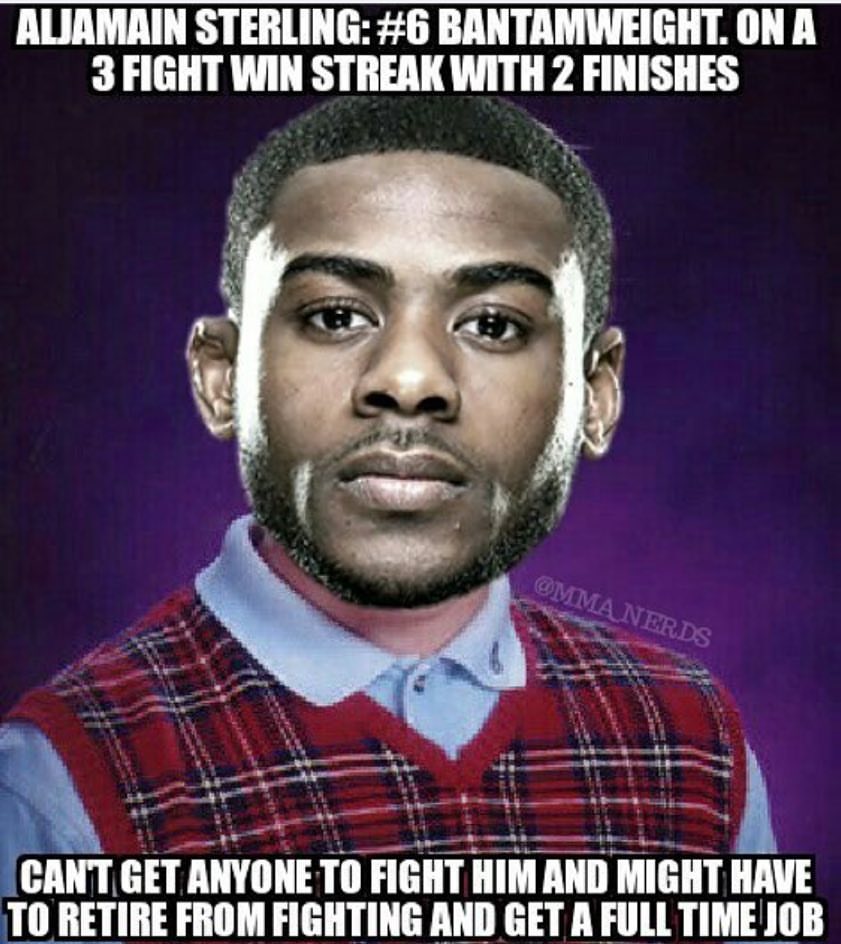 The No. 6 ranked bantamweight in the UFC, Sterling is apparently having trouble finding willing opponents, and as a result, is not making enough money to justify putting his body on the line inside the Octagon.