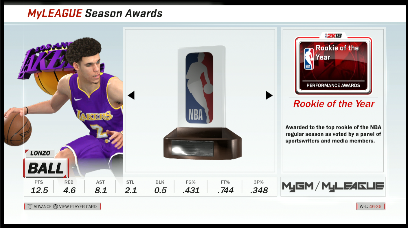 Rookie of the Year: Lonzo Ball, Los Angeles Lakers