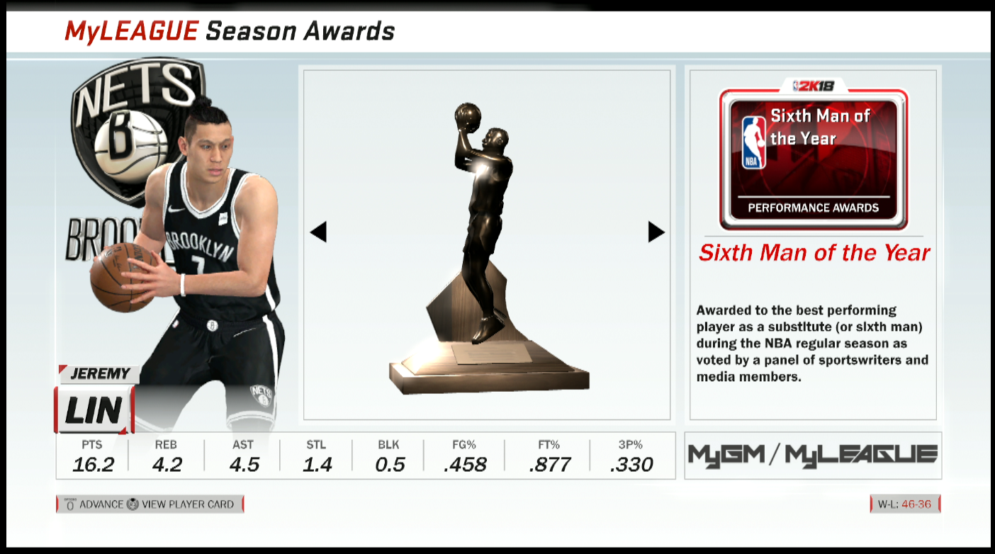 NBA Sixth Man of the Year: Jeremy Lin, Brooklyn Nets