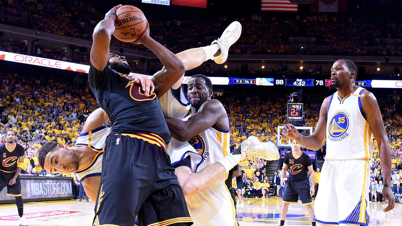 June 12: Draymond Green saves Klay Thompson from a nasty spill by catching him in mid-air in Game 5.