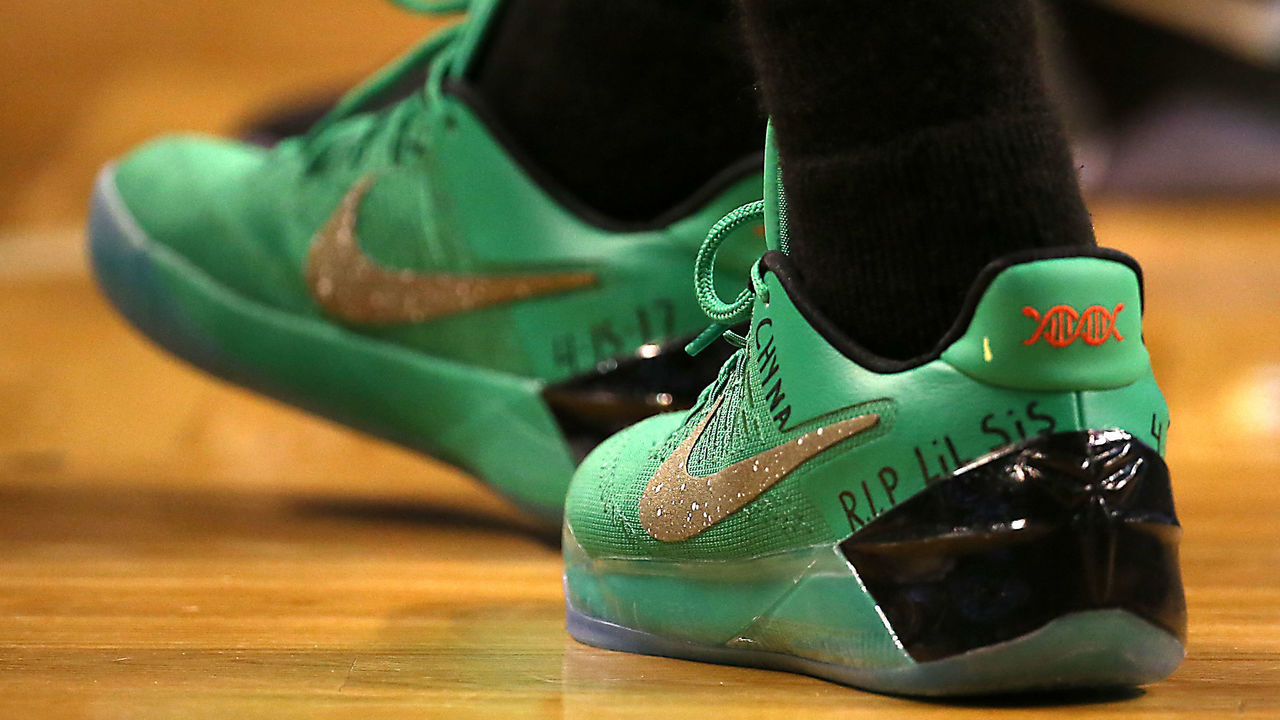 April 16: Before Game 1 against Chicago, Isaiah Thomas inscribes his shoes with the name of his sister, Chyna, who tragically died in a car accident the day prior.