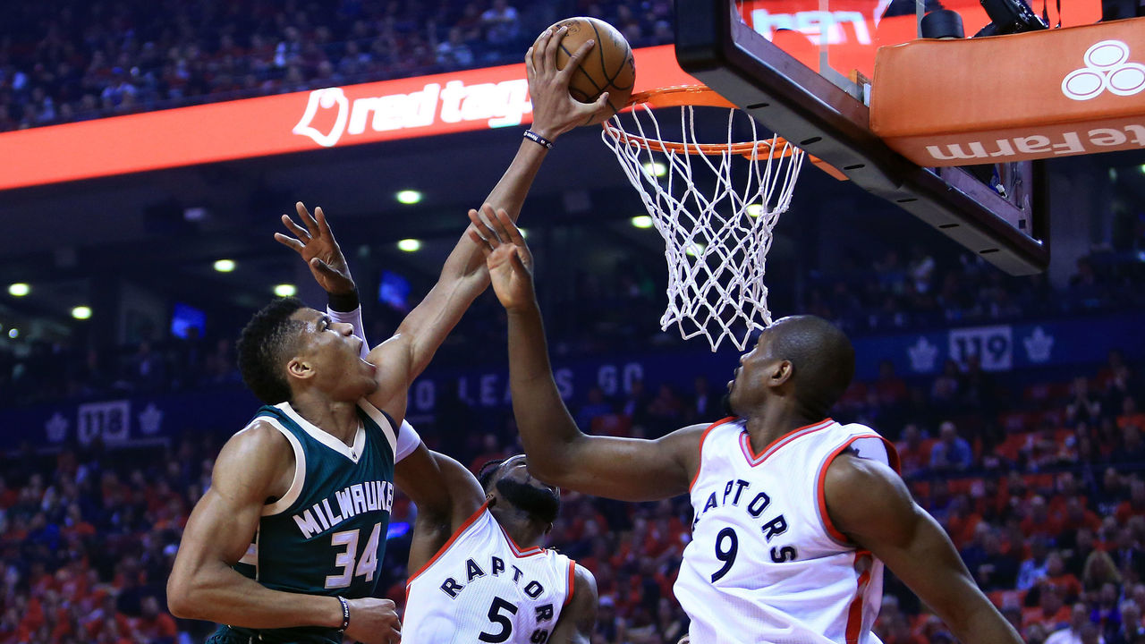 April 18: Giannis Antetokounmpo's freakish wingspan is on full display in the playoffs with this absurd dunk in traffic in Game 2 against the Raptors.