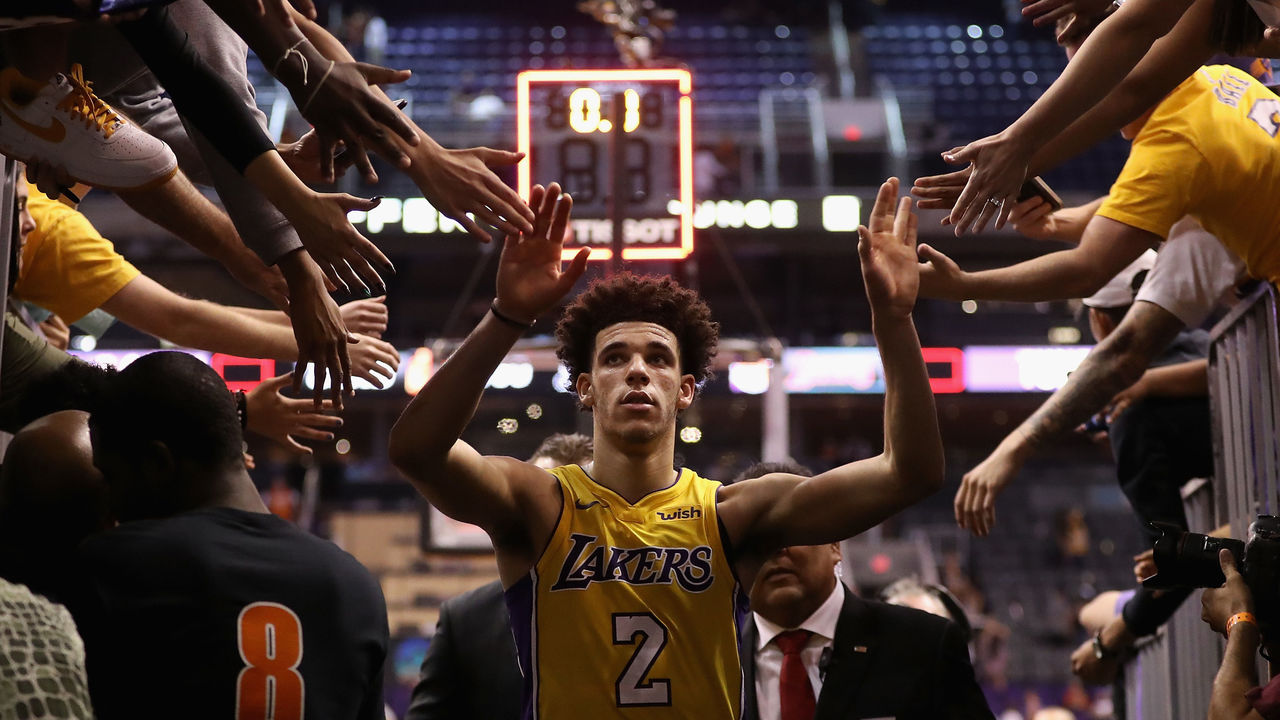 Oct. 19: Lonzo Ball heads to the locker room during his first official NBA game as Lakers fans reach out for their touted point guard of the future.