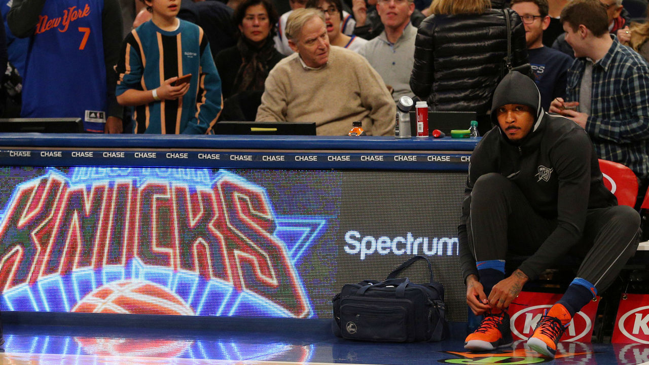 Dec. 16: Carmelo Anthony prepares to step on the MSG court for the first time since leaving New York, as Knicks fans stare down the Thunder forward.