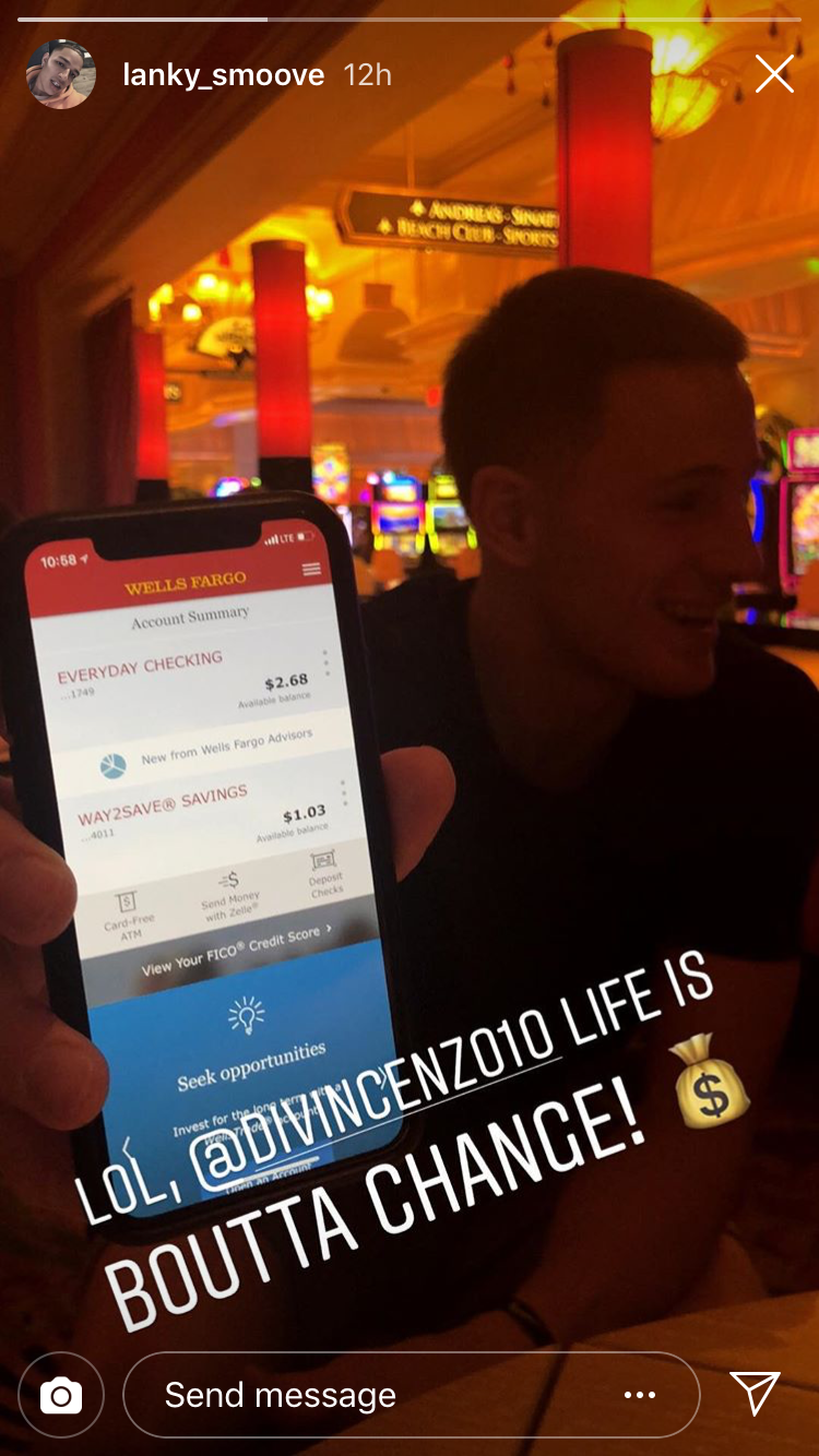 Milwaukee Bucks forward D.J. Wilson shared a photo on his Instagram story early Tuesday showing a total of $2.68 in DiVincenzo's Wells Fargo checking account and $1.03 in his savings.