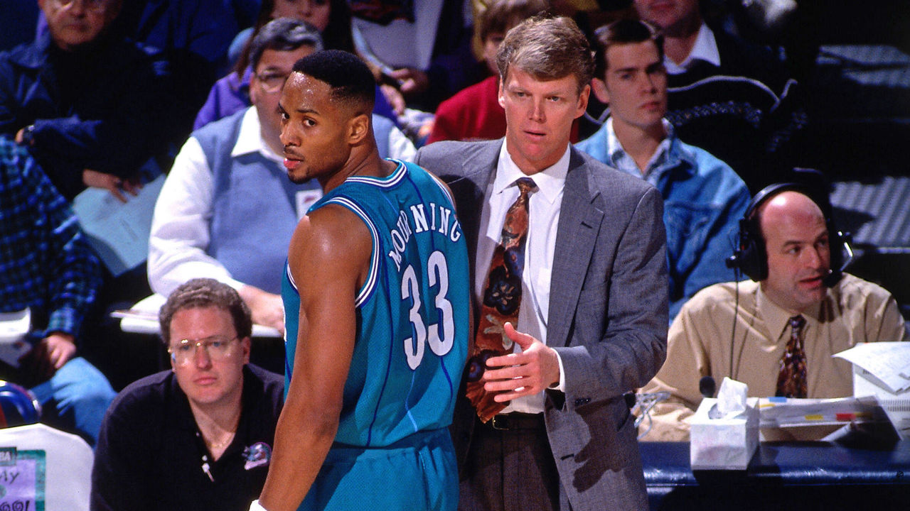 Mourning hit the ground running, albeit after holding himself out of training camp and the first four games of the season to improve his rookie deal. He turned out to be the perfect frontcourt partner for Larry Johnson, the first overall pick from the year prior. Together, they posted respective 20-10 seasons, with Mourning adding 3.5 blocks per game for good measure.