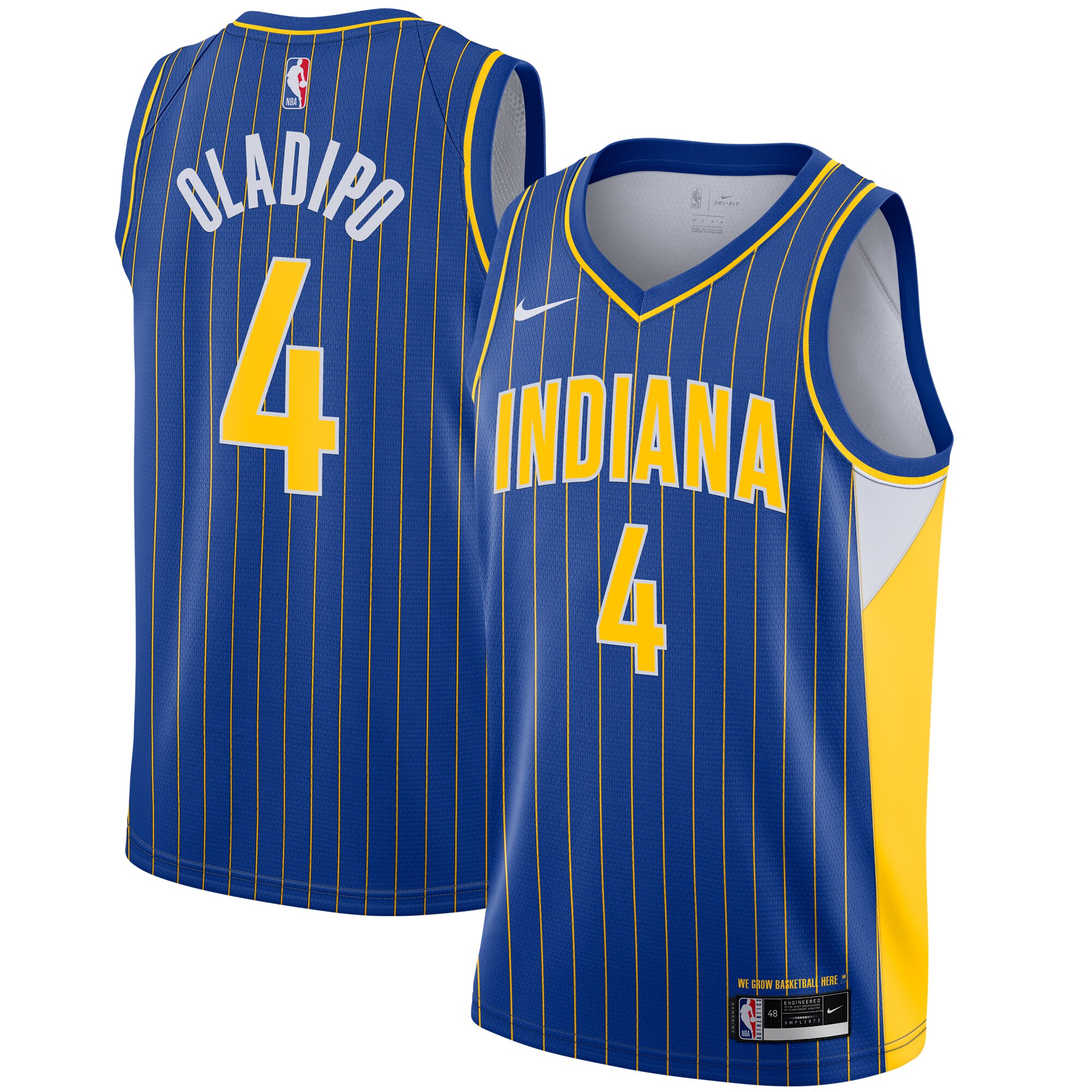 The Pacers finally stopped fiddling around with bland alternates inspired by the city's history in stock car racing, opting for this fresh take on an old, familiar staple. Note the base is more of a royal blue than the dark navy tones frequently sported during the Reggie Miller years. Hopefully, this isn't simply a one-season addition.