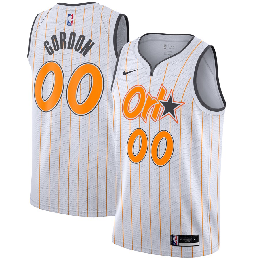 This is a much stronger marriage between the Magic's existing iconography (the pinstripes and typeface) and a local twist (orange) than last year's dour gray look. Still, the team should lay further claim to Florida's favorite citrus by swapping out the "O" in Orlando for the fruit itself.