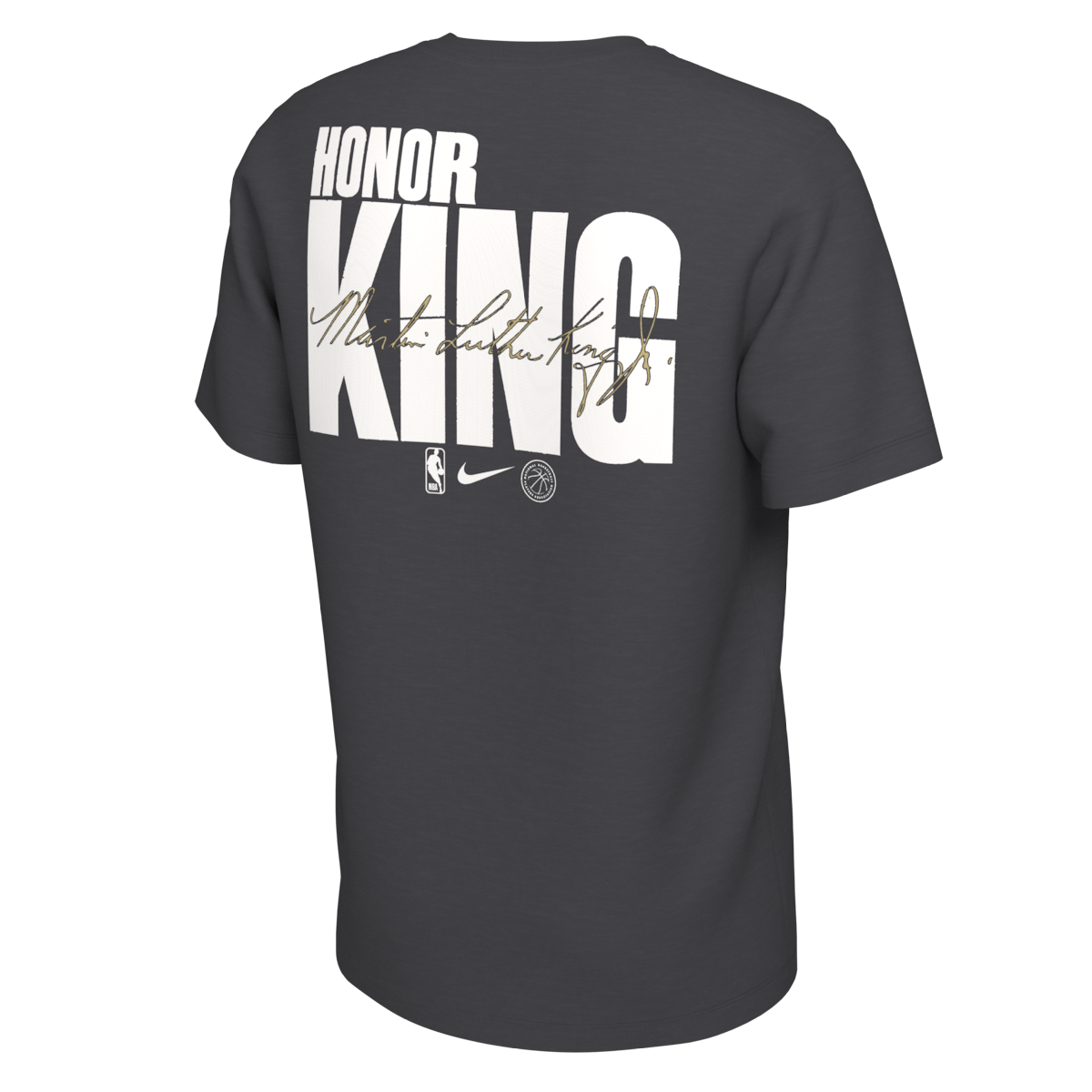 From Jan. 14-18, NBA teams will wear custom Nike MLK Day warmup shirts featuring the words "Now is the time to make justice a reality for all" from King's iconic "I Have a Dream" speech on the front. The back of the shirt reads "Honor King."
