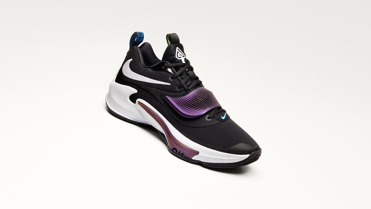 The Zoom Freak 3 features tech supports designed to help progress the Milwaukee Bucks star's Euro step and is the first of his shoes to include a midfoot strap.