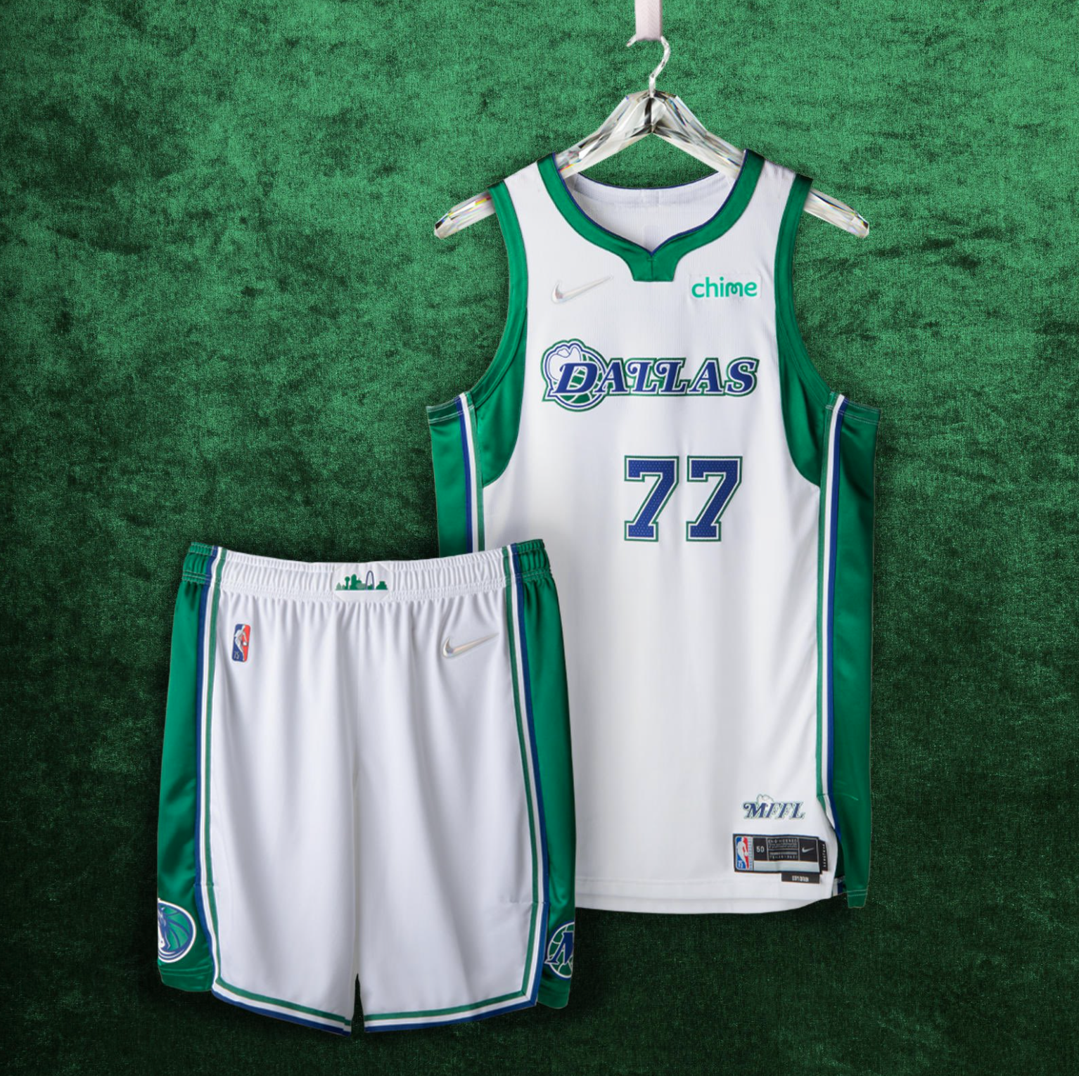 What's the point of a throwback jersey if you're going to stick a social media hashtag on it? A "Mavs Fan For Life" will certainly enjoy this blast from the past, but the green and blue uniforms are a little dry.