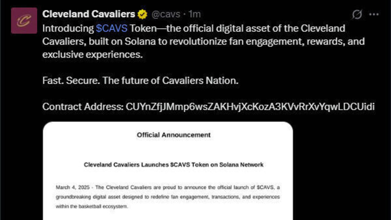 X accounts belonging to NBA Spain and the Cleveland Cavaliers sent out fake press releases promoting new cryptocurrencies - an NBA coin and a team-specific $CAVS coin - built using the Solana blockchain.
