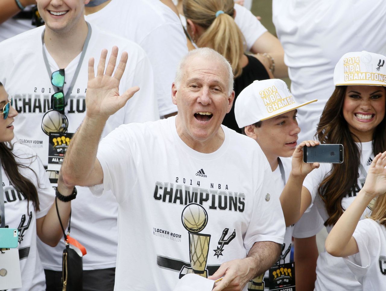 Head coach Gregg Popovich lets everyone in attendance know he can count the number of titles he's won.