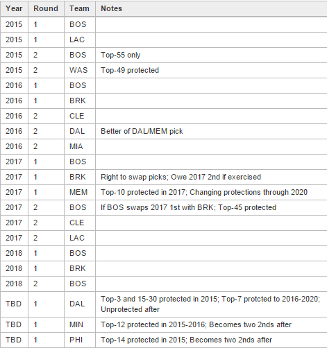- Avery Bradley, 24, a solid two-way guard with three years and $24.8 million remaining on his deal.