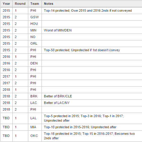 Hardly above the salary cap floor this season, the 76ers have only $26.7 million in salary committed for next season and a whopping $0 in the potential salary cap bonanza of 2016. That's how you stay ready for anything.