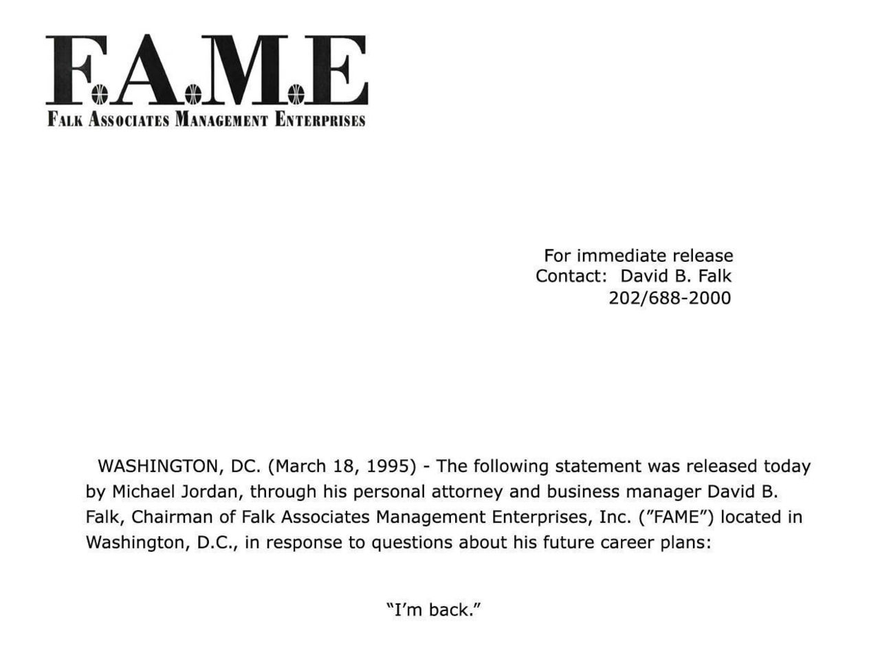 Of course, he undid all this sadness in 1995 with two words: "I'm back."