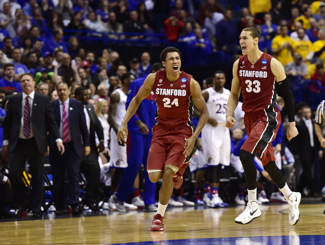 But the Cardinal ended up making a potential Embiid comeback a moot point yesterday with a total suffocation of the high-powered Jayhawk offense, holding Kansas to just 57 points and 33% (!!!) shooting with their suddenly impenetrable zone defense. KU was able to cause enough turnovers to keep it close late, and a furious Connor Frankamp shooting rally in the final minute nearly shot the Jayhawks back into it, but in the end, Stanford emerged victorious, making their first Sweet Sixteen since their last NCAA appearance in 2008.