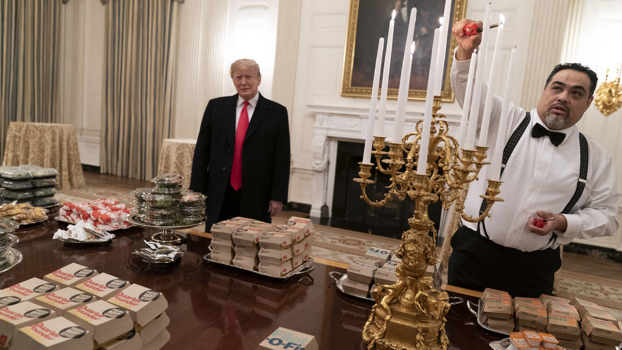 President Donald Trump welcomed the Clemson Tigers to the White House for the traditional national champion's visit on Monday, making sure to feed his guests despite the government shutdown.