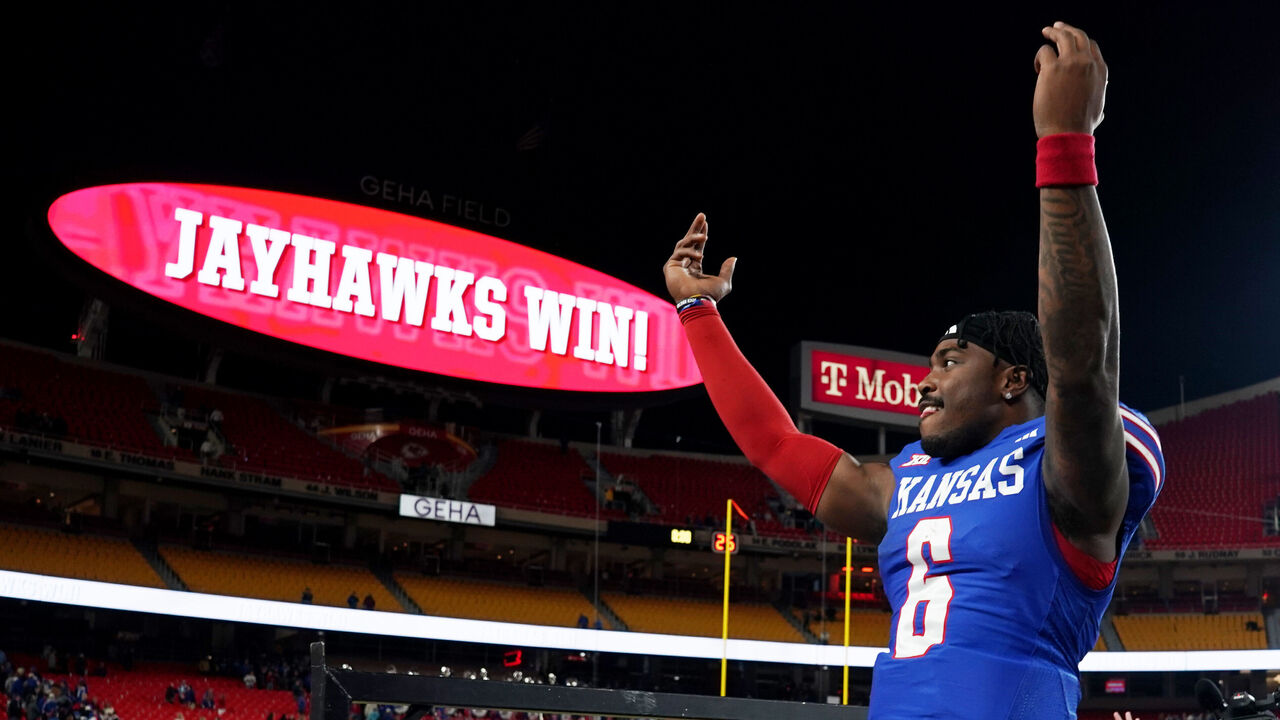 The 5-6 Jayhawks made history Saturday, becoming the first team with a losing record to beat ranked opponents in three straight games. Red-hot Colorado was the latest victim, as Devin Neal shredded the Buffaloes' defense for 207 yards and three touchdowns on the ground in the 16-point victory. Neal added 80 yards and a score through the air to give him an absurd 287 yards on the night - just 21 behind Colorado's total for the game.