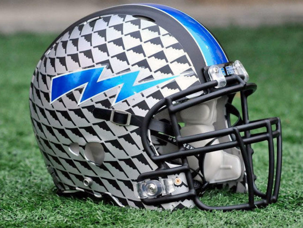 A decade before the NCAA went crazy with the helmet designs, the XFL's Birmingham Thunderbolts were doing their own thing. The "Bolts" had an all-white shell with a "B" right on the front of the helmet... which was just not done in 2001. Lightning bolts ran off in 7 different directions over the top and the sides of the helmet. The Bolts and the XFL would only last one season, the whole league folded following that inaugural 2001 season.
