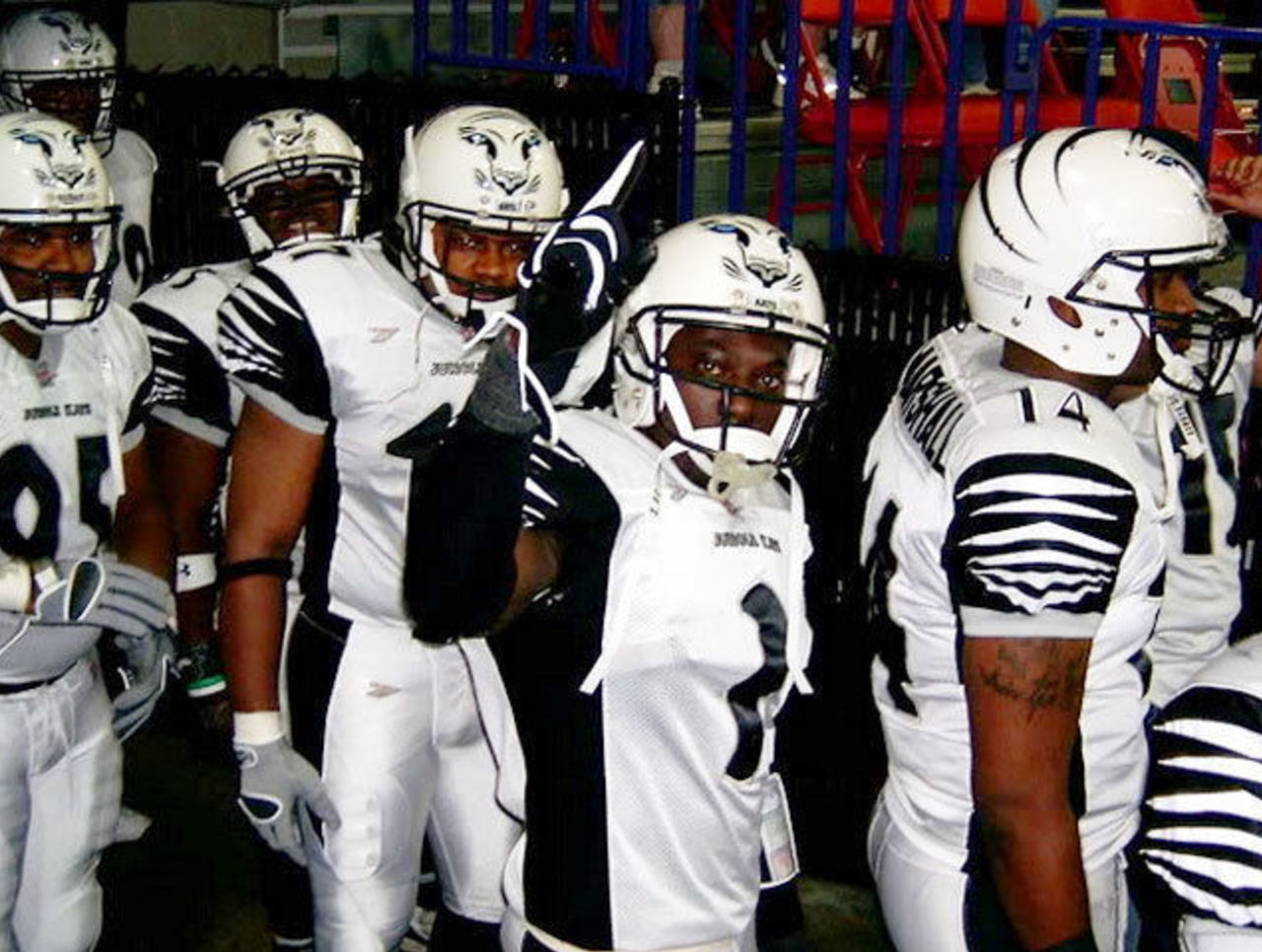 Like the inspiration for this article, the Jungle Kats were an Arena Football team. Like the Thunderbolts mentioned earlier they only lasted one season. The Jungle Kats used a white helmet with tiger eyes, a nose, and whiskers painted on the front in black while tiger stripes ran along the top to the back of the helmet. Kinda like the Kent State helmet earlier but introduced a good six years earlier.