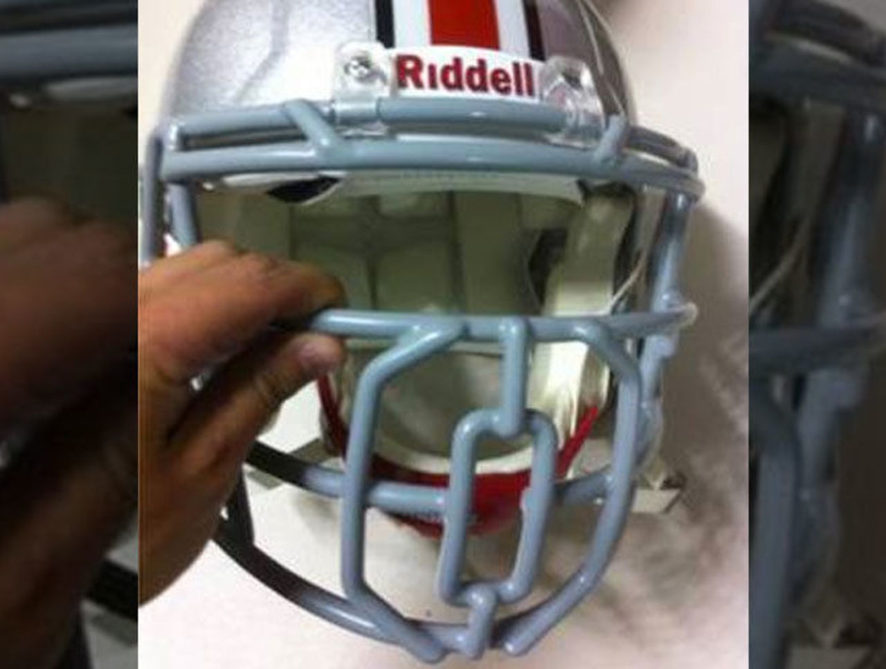 The Buckeyes' helmet design itself isn't weird... although the team is known for handing out little buckeye helmet stickers to their players for good plays. What we're focusing on here is their facemask. Check it out. It's an "O". For "Ohio". Creativity bonus points to the guys at Ohio State for thinking this one up.