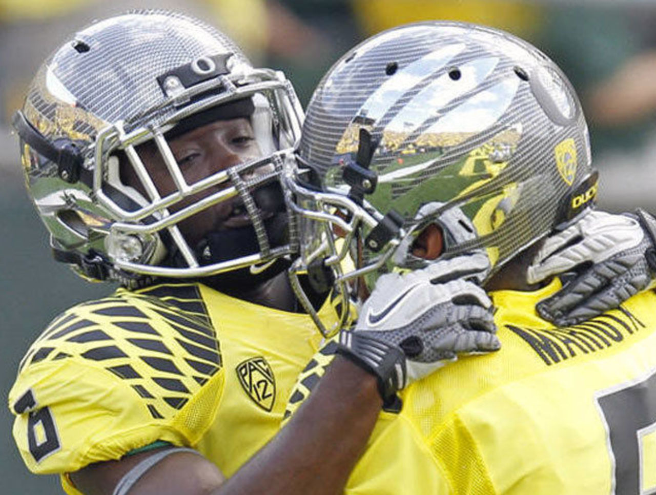We could probably do an entire trilogy of posts on the uniform designs the Oregon Ducks have worn over the years, but for now we'll just stick to one. This silver-on-silver design featured chrome wings on either side with a chrome facemask on a chrome helmet with a matte silver "O" on the back.