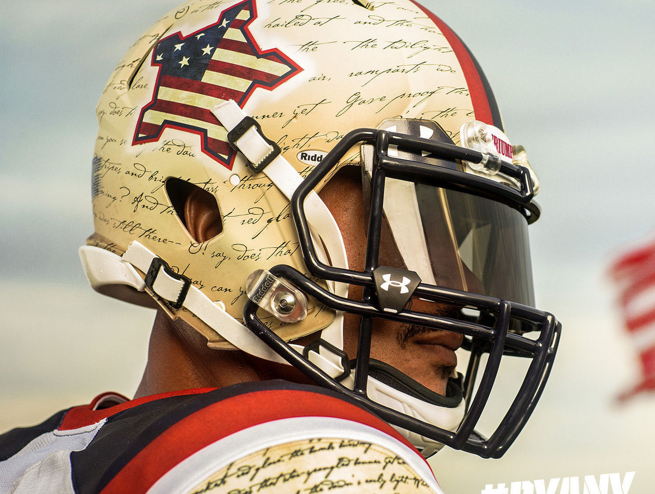 The Under Armour uniforms have the poem "Defence of Fort McHenry" inscribed on the jersey's sleeves as well as its helmet and shoes.