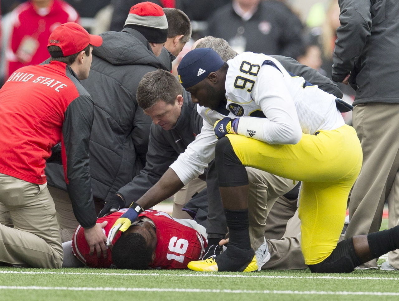 When Buckeyes' quarterback J.T. Barrett went down with a broken ankle, Wolverines' quarterback Devin Gardner came to his side to comfort his opponent.
