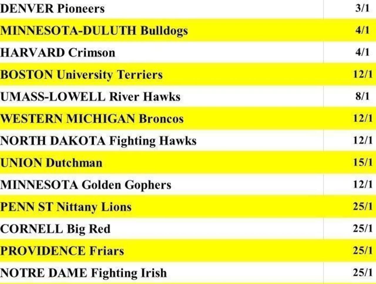 The Pioneers are favored to win this year's NCAA championship, according to the Westgate Las Vegas SuperBook.