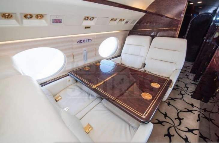 A spokesperson for the retired boxer described the new jet to TMZ Sports as "a 12 passenger Gulfstream III with gold cup holders, gold sink, gold accents throughout. It has all white leather seats and a fully stocked kitchen."