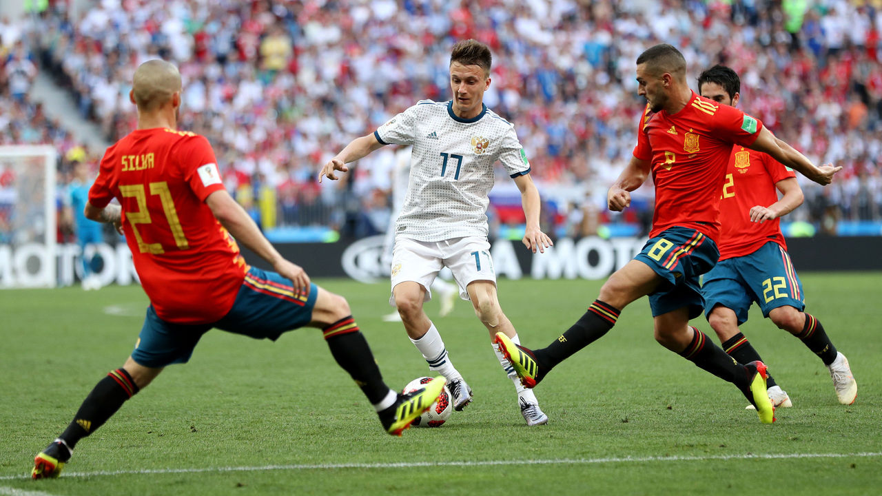 Russia kept Spain at bay for long enough to reach penalties, and the host nation took it from there, winning 4-3 on spot-kicks to book a place in the quarter-finals. Stanislav Cherchesov's side forced Spain to work for every blade of grass, his back five giving his team the width to keep the 2010 World Cup winner on the perimeter and out of dangerous areas.