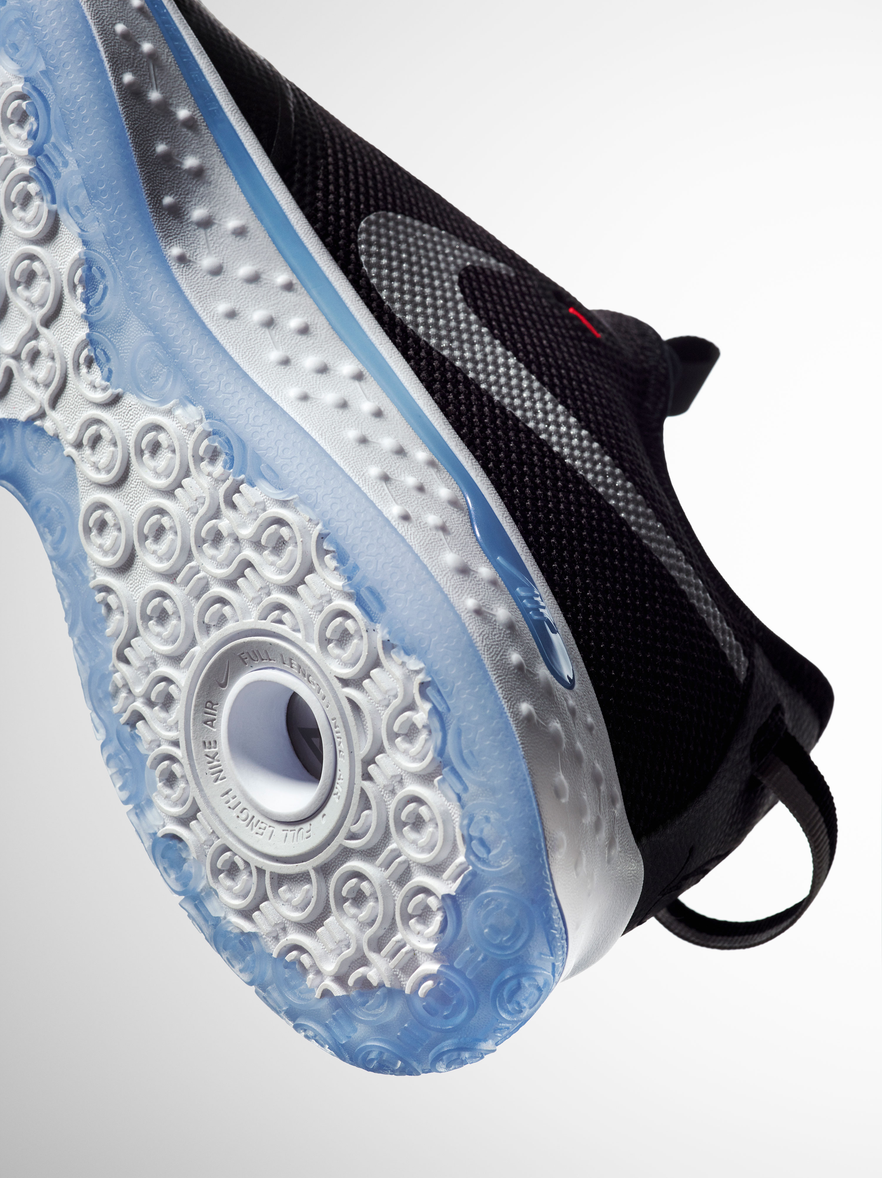 The shoe features lightweight cushioning called "Air Strobel" and a mesh-zippered shroud that fastens over the laces - a first for the PG line, according to Nike. The laces can be worn within it or externally.