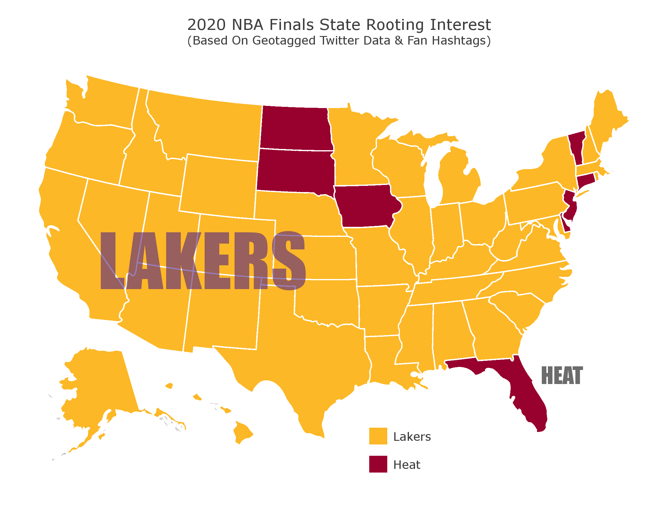 Twitter map shows most of U.S. rooting for Lakers in NBA Finals