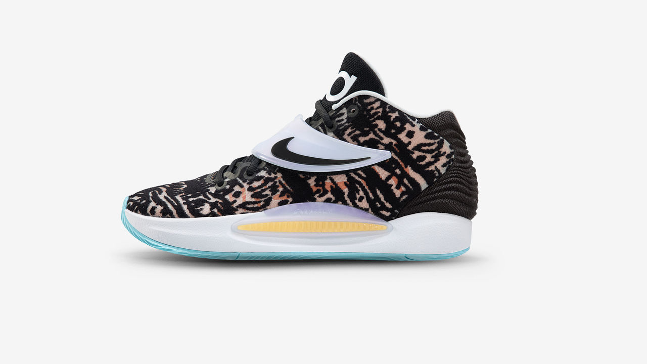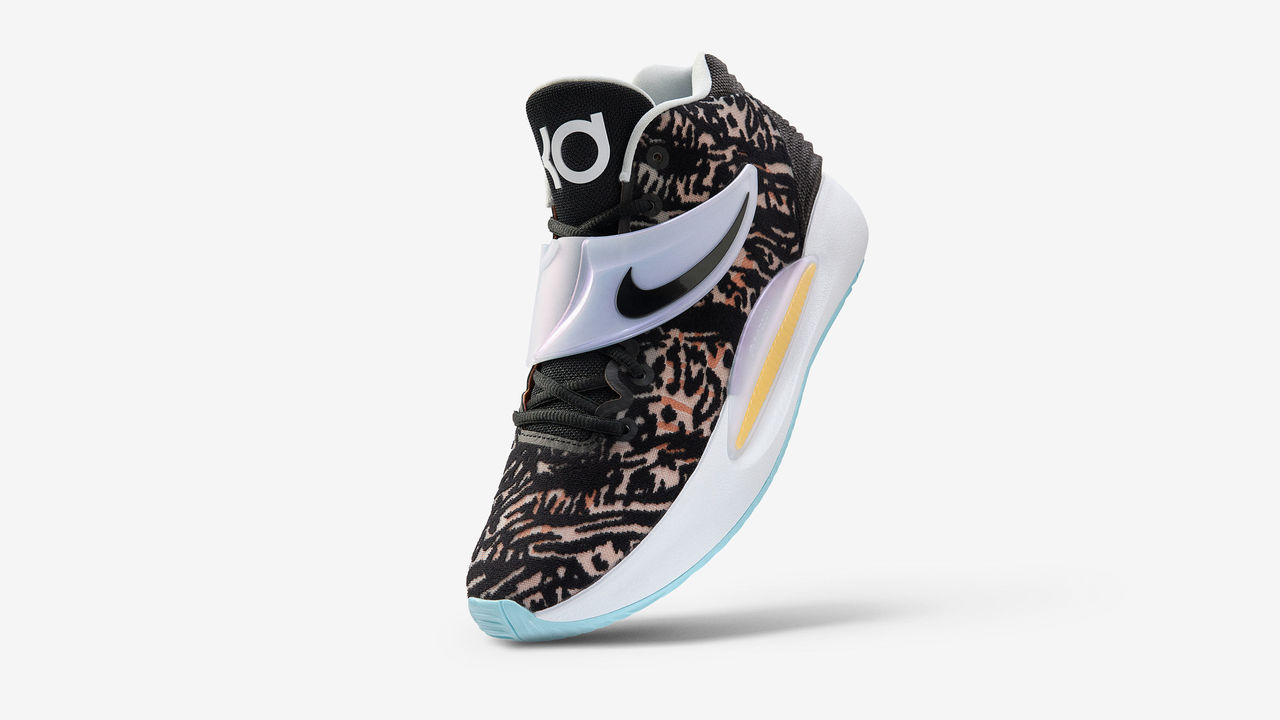 The KD14 will release on April 14 across North America in a black and white colorway. Nike noted that the shoe's mesh upper allows for more detailed colorways centered around art, music, and other topics.
