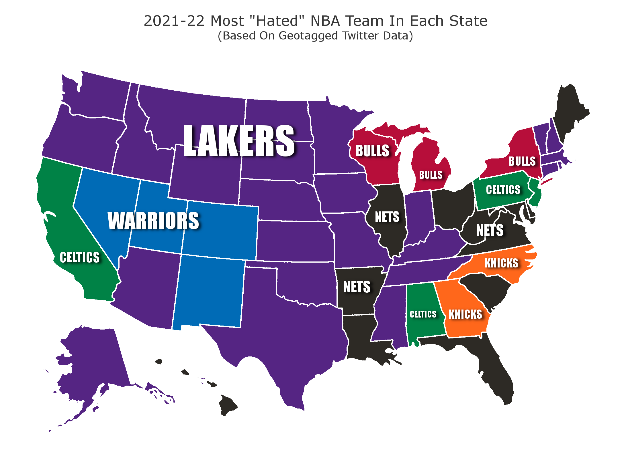 Twitter map shows Lakers are most hated NBA team across U.S.